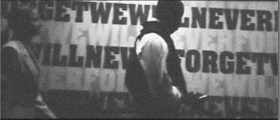 to Ms. White in front of a We Will Never Forget sign; not only is Lee