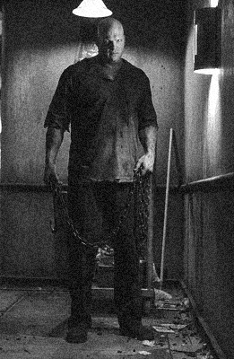 on the old hotel killer stand-by of the fire axe, our man relies